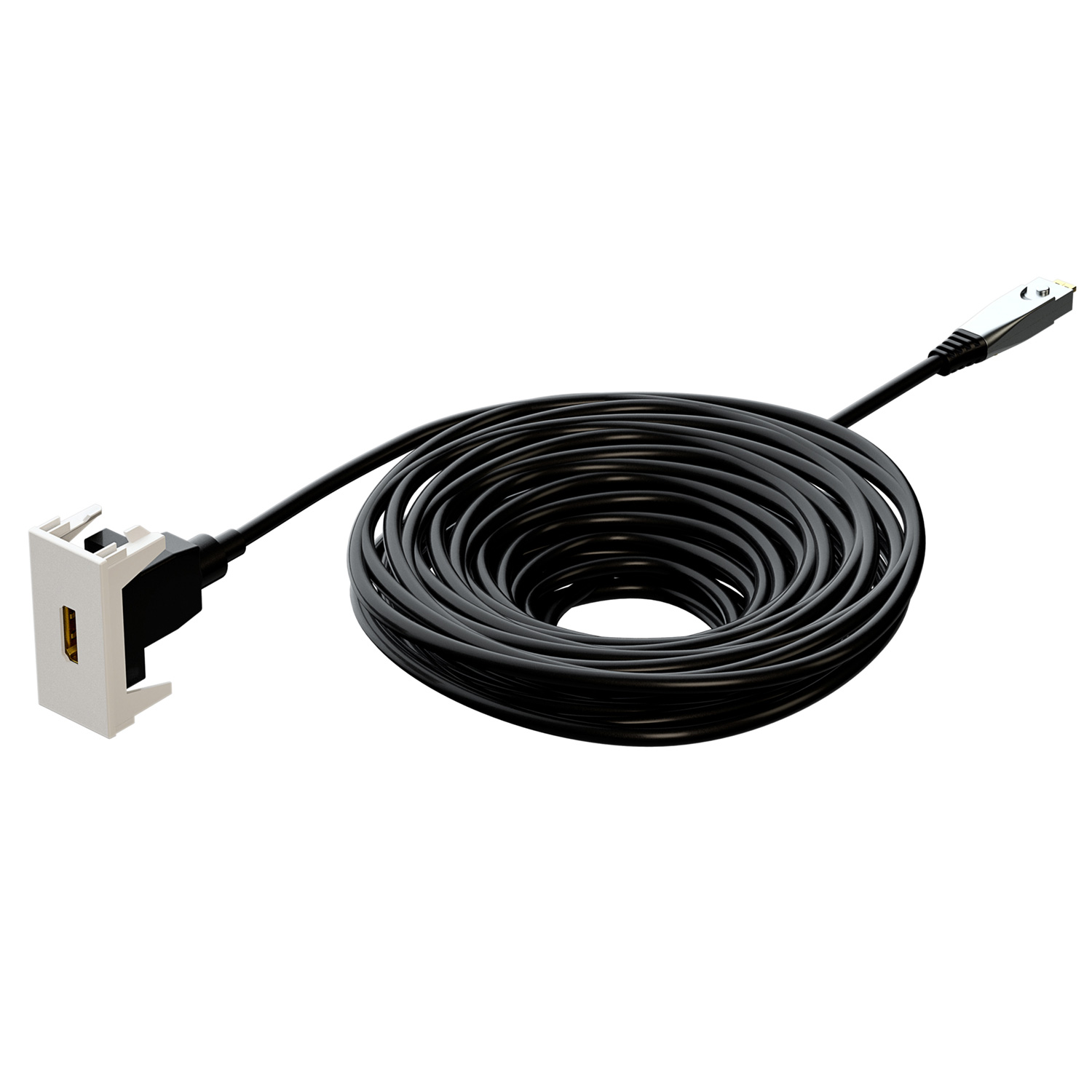 Hibrid optikai kábel száloptikával és rézvezetékkel, támogatja a nagy sebességű HDMI-t Ethernet-tel, HDMI 2.0, 18 Gbs-ig terjedő sávszélességet, 4K2K (60Hz/4:4:4) felbontást, külső tápegység nem szükséges. Kábelátmérő: kb. 4,5 mm Maximális húzóerő: 15 kg Minimális hajlítási sugár: 20 mm Ajánlott cső: EN32 rögzítésekkel, EN 20, ha a cső 100% egyenes.